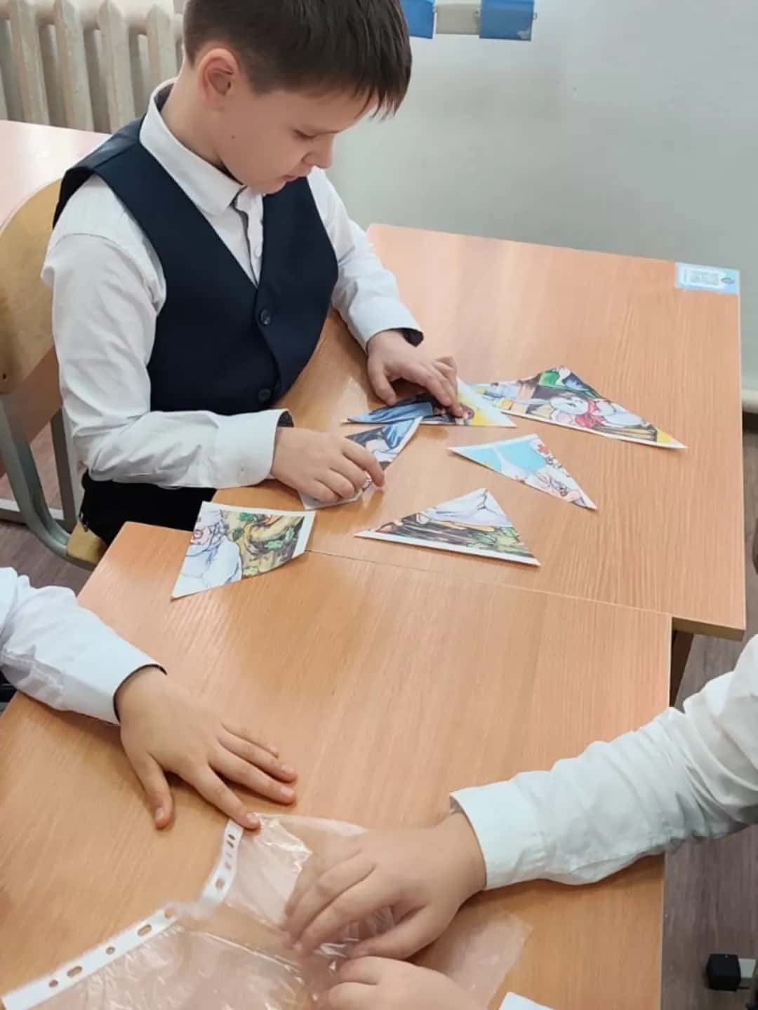 18 декабря в рамках декады учителей начальных классов в 0 "В" и 0 "Г" классах была проведена игра "Загадочный калейдоскоп", на которой учащиеся отгадывали загадки, по отрывкам определяли название сказок, по отрывкам из аудисказок определяли их героев . Учащимся было предложено собрать мозаику и назвать произведение. А также по аксессуарам определяли, героем какой сказки он является.